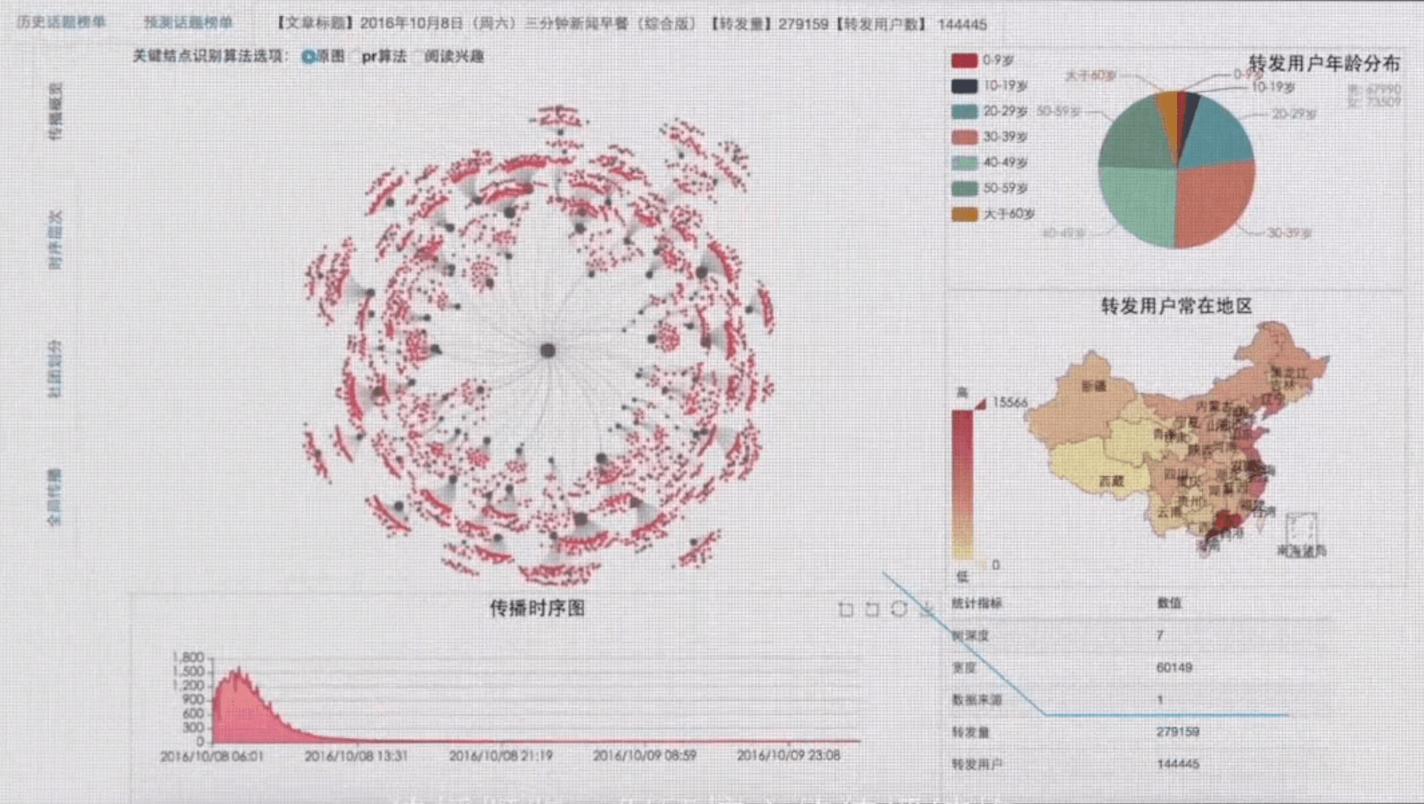 WeSeer can break down readership by different segments (ex: location, age, community). This display shows the results of an article published October 2016: “3 minutes of news for breakfast”. Image credit: WeChat-HKUST Joint Lab on Artificial Intelligence Technology.