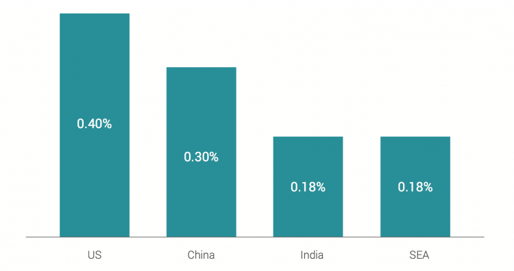Total venture capital investments as a percentage of GDP in 2016. Source: e-Conomy SEA Spotlight 2017, Google/Temasek